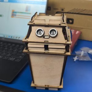 This course teaches mechatronics and introductory block-based coding by challenging students to build a functional, small-scale recycling bin. Students assemble the bin and code an ultrasonic sensor and a servo motor to create an automatic, hands-free lid that opens when motion is detected.